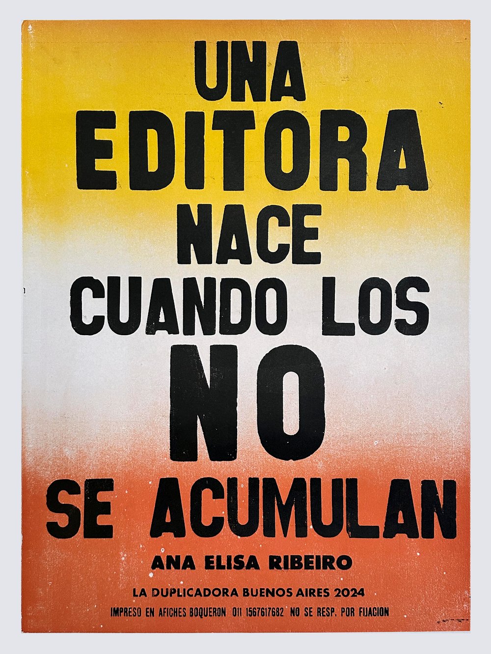 Cartel tipográfico impreso en Buenos Aires con dos gigantescas máquinas alemanas de 1920 por Cristian Profilo, tercera generación de impresor.
